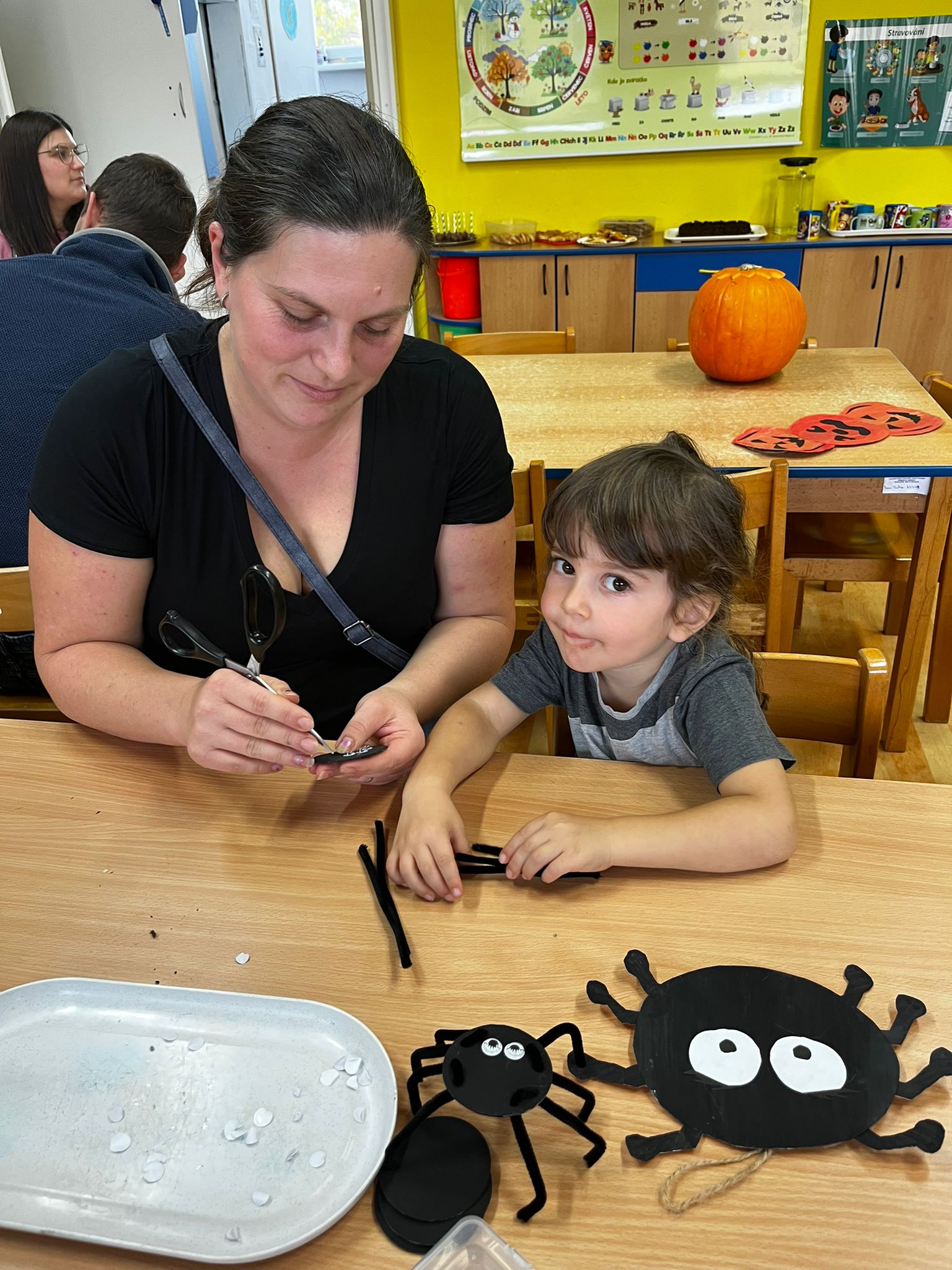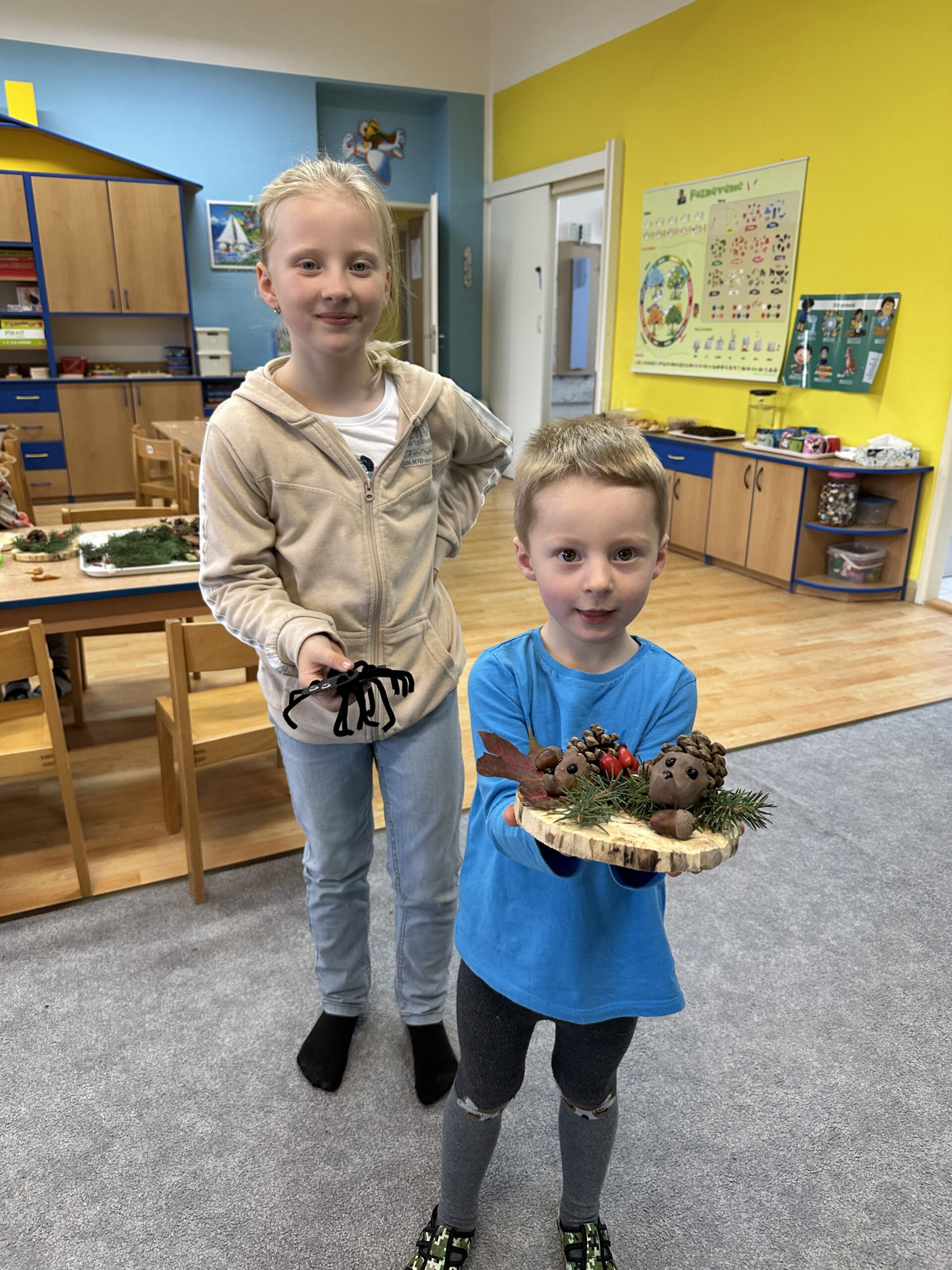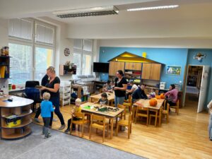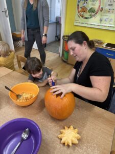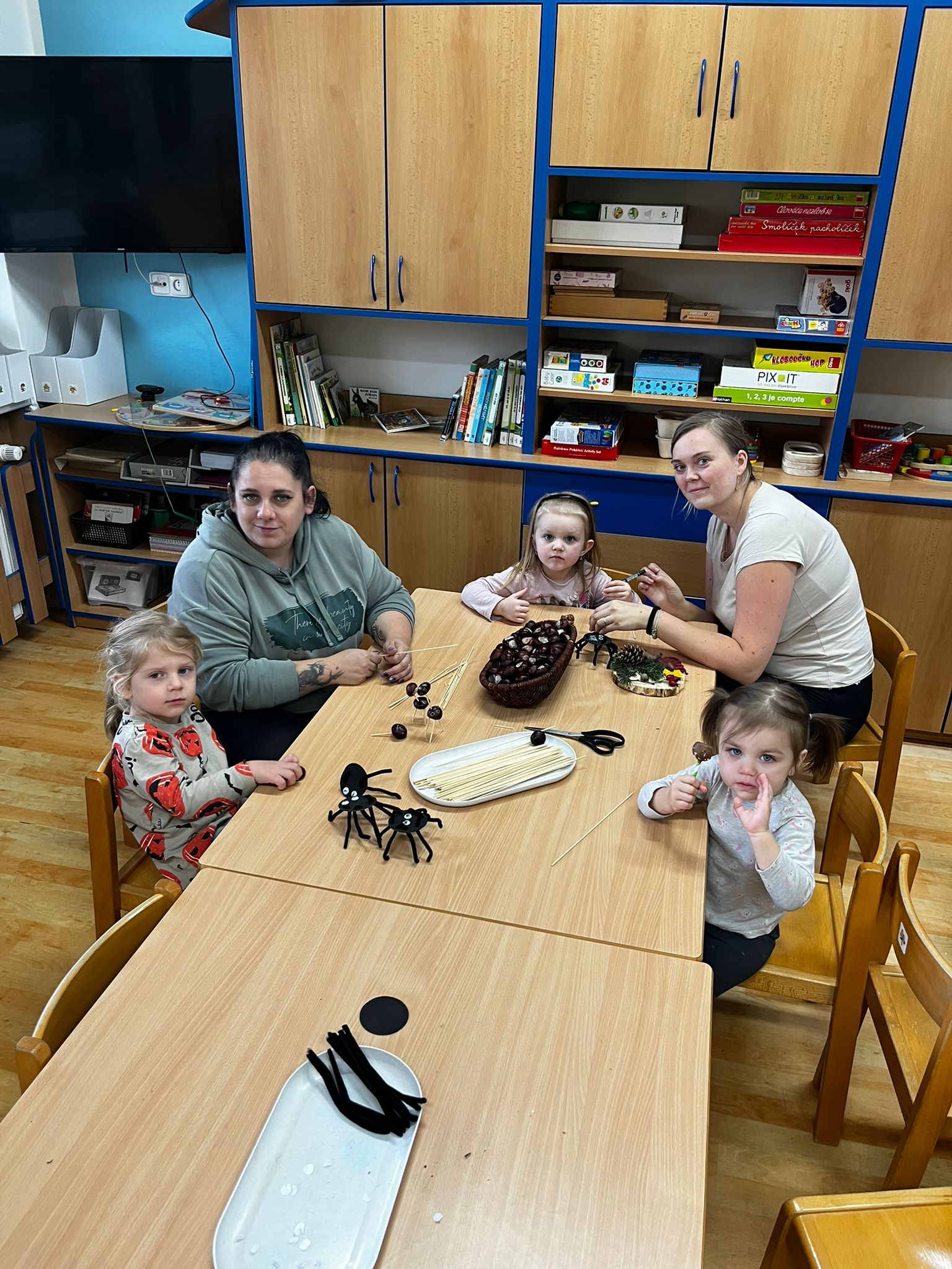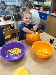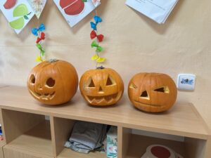 Společně jsme vyráběli pavoučky🕷️, zvířátka z kaštanů🦒 a nechybělo ani tradiční dlabání dýní🎃. Děti si tvoření moc užily a domů si odnesly krásné podzimní výrobky i spoustu zážitků. 🍂