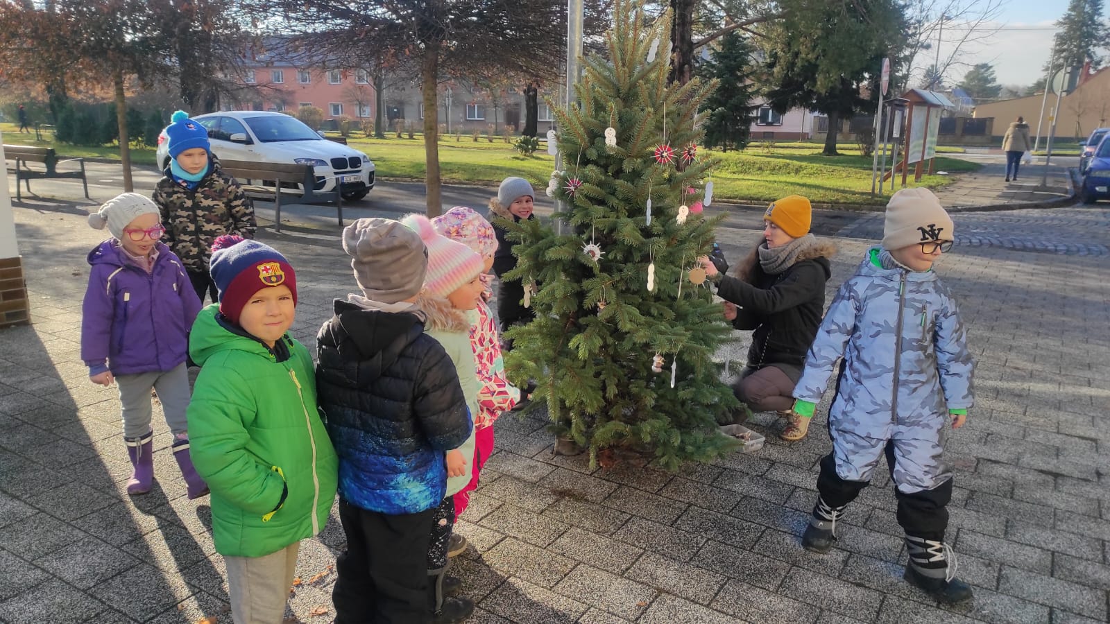 Ve čtvrtek 27. listopadu 2025 jsme procházkou vyrazili na náměstí, kde pro nás byly připravené Vánoční stromečky, které jsme měli za úkol nazdobit. 🎄